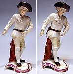 この作品も、ロカイユ装飾を施した台座の上に、木の幹を背に立っている、大鎌を持って草を刈る農夫を表したフィギュアだが、両手で持っているはずの鎌は失われている。腰のベルトにはサヤが付けられている。顔は頬がふっくらした典型的なランツの作品とは違ってはいるが、頚にスカーフを巻く農夫からは、幾らか気品が感じられる。