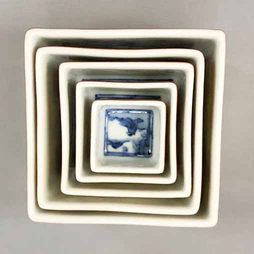 次に二代目竹泉の染付入れ子觴(この字で「ショウ」と読みます。「さかずき」の事です)