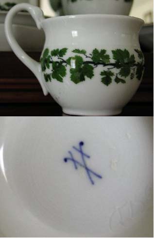 最近手に入れた、マイセンのセットです。 年代は1800年中ごろだと思います。 価値がよくわからないので、詳しくご存知のかたおしえてください。 でも、一目見てきにいってしまいました。 ポットの注ぎ口がかわいいです。