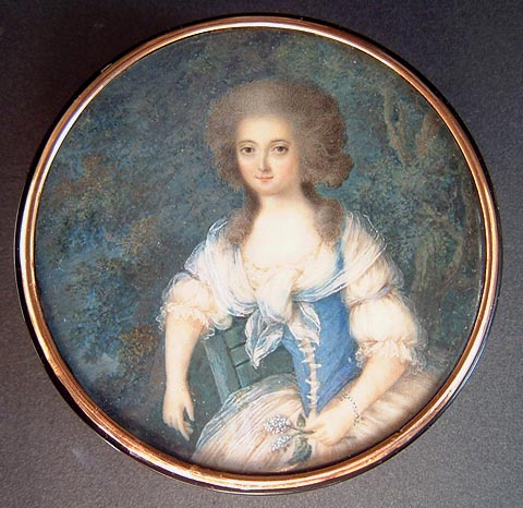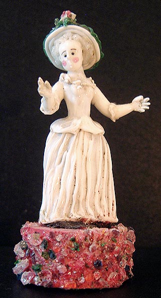 フラスクと小皿は伝統的な図柄ですが、ベースは少し趣が違い、人物の髪型が現代的でネクタイをしていたり、茶色で描かれた女性がモダンだったりと、この柄の「進化」が伺われて面白いです。