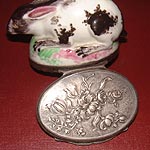 サイズは高さ約4cm、長さ(兎の頭から尾まで)6cm、銀製の蓋のサイズ、幅3.5cm、長さ5cm
