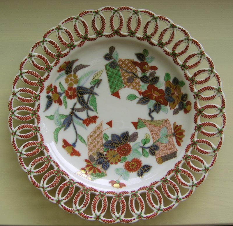 ジノリの伊万里写しのプレートです。年代は1884〜1891年頃。直径約23cm。写真では分かりにくいのですが「GINORI」と裏側に陰刻されています。こんなものも作っていたのか!と驚きました。