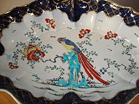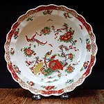 八角皿 (1750-1752) Raised Anchor Period 色絵鳳凰松竹梅柴垣文写し