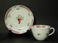 Mieさんの花籠柄にちなんで、英国のリヴァアプールで設立されたハーキュラネウム製のC&Sにもこの柄に似たものが手持ちの中にありました。この窯は、ハンドルに特徴があり上下2箇所に僅かな突起のような形態を持っており指を添えた時、安定感があります。