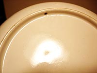 年代は1750−60年ぐらいだと思います。ただこういったタイプのものはWedgewoodでも他の工房でも造られており、Whieldonと確定はできないのですが縁の仕上がりや全体の質は非常に高く、購入した学究肌の18世紀専門のディーラーさんもWhieldonとおっしゃっていました・・・が私もまだ勉強中です。